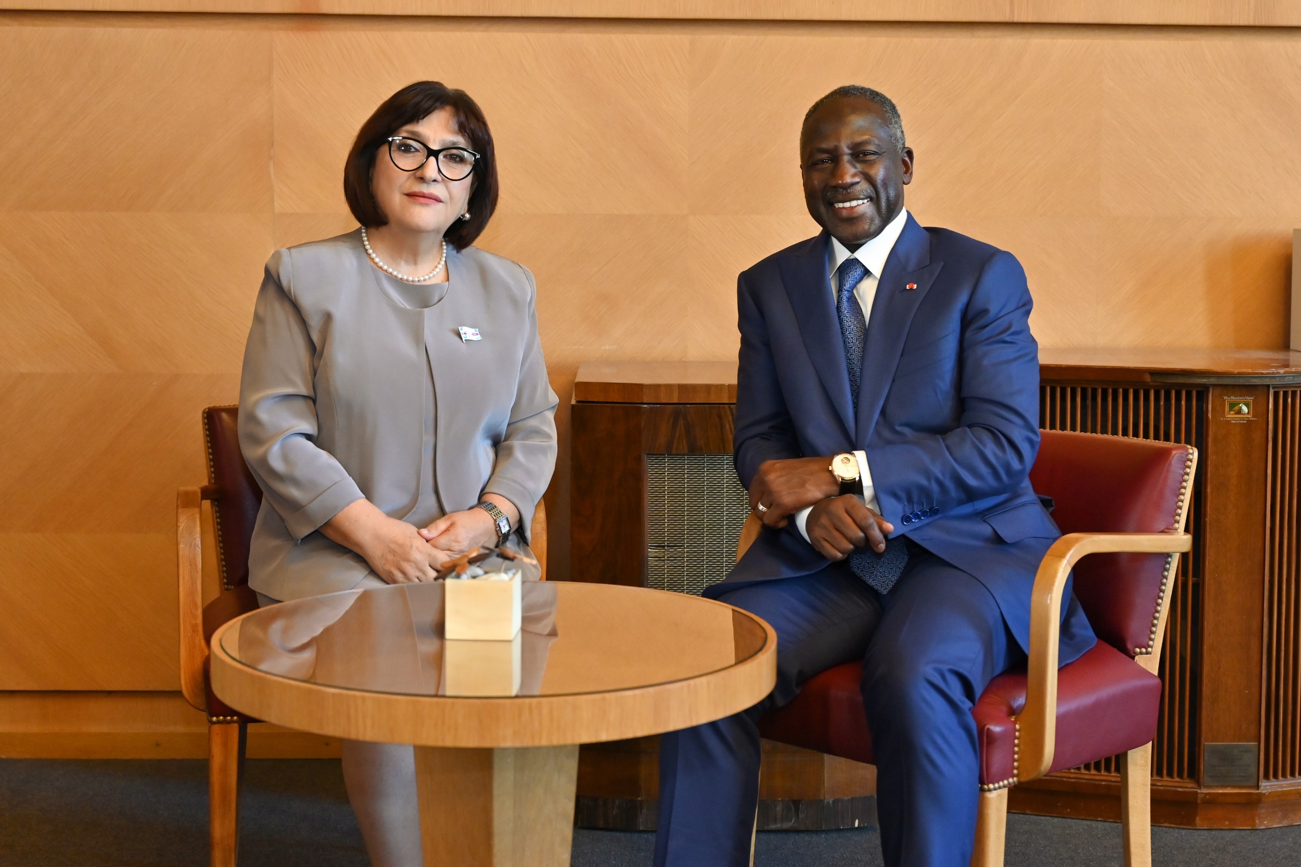 Speaker of the Milli Majlis Sahiba Gafarova also held meetings with Speaker of the Mazhilis of the Parliament of the Republic of Kazakhstan Yerlan Qoşanov and Speaker of the National Assembly of the Republic of Côte d'Ivoire Adama Bictogo on the sidelines of the 6th World Conference of Speakers of Parliament.