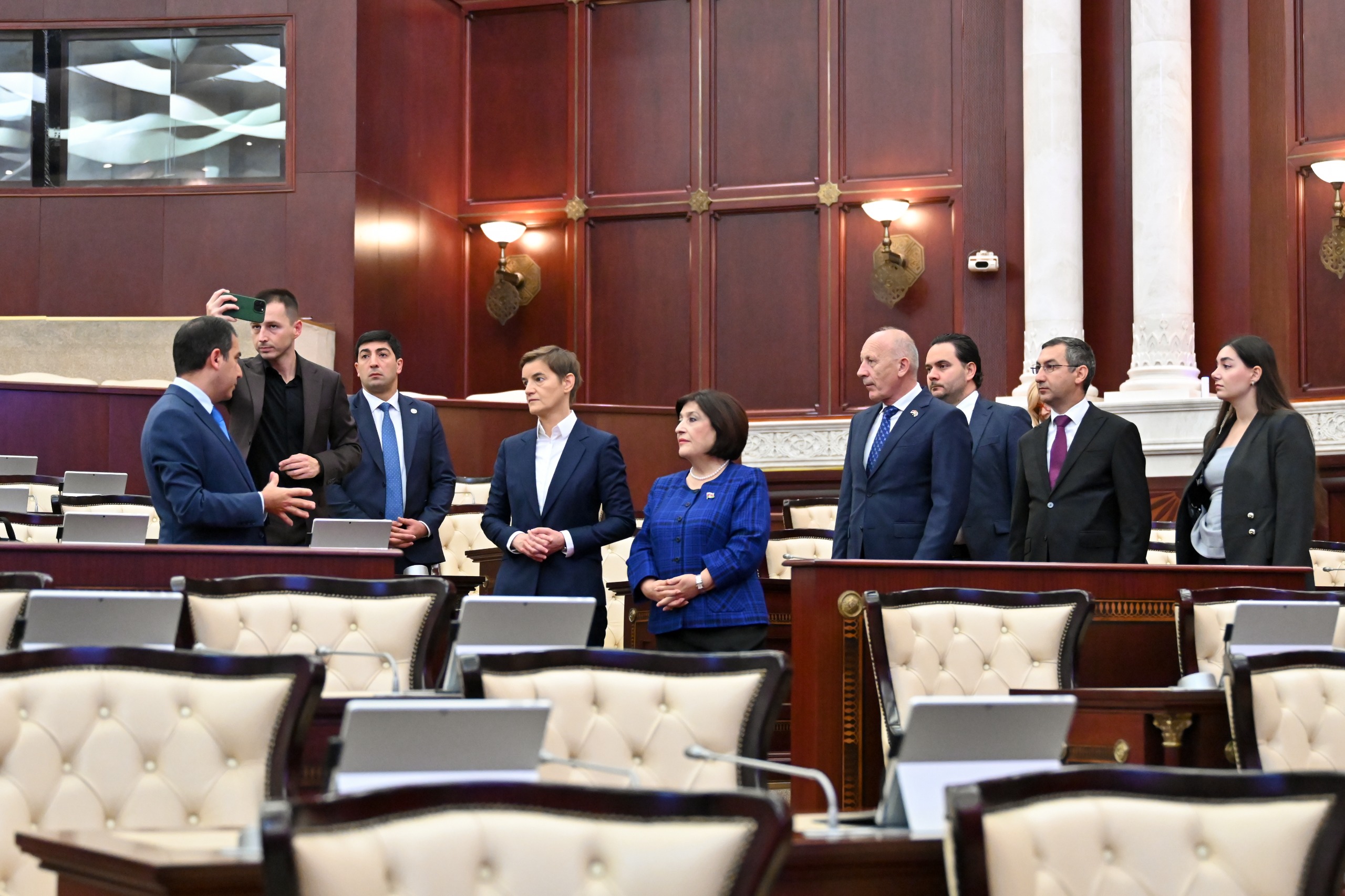 After their acquaintance with the plenary chamber of the Parliament, the guests went to the Heydar Aliyev Museum in the Milli Majlis; Ana Brnabić signed the Memorial book.
