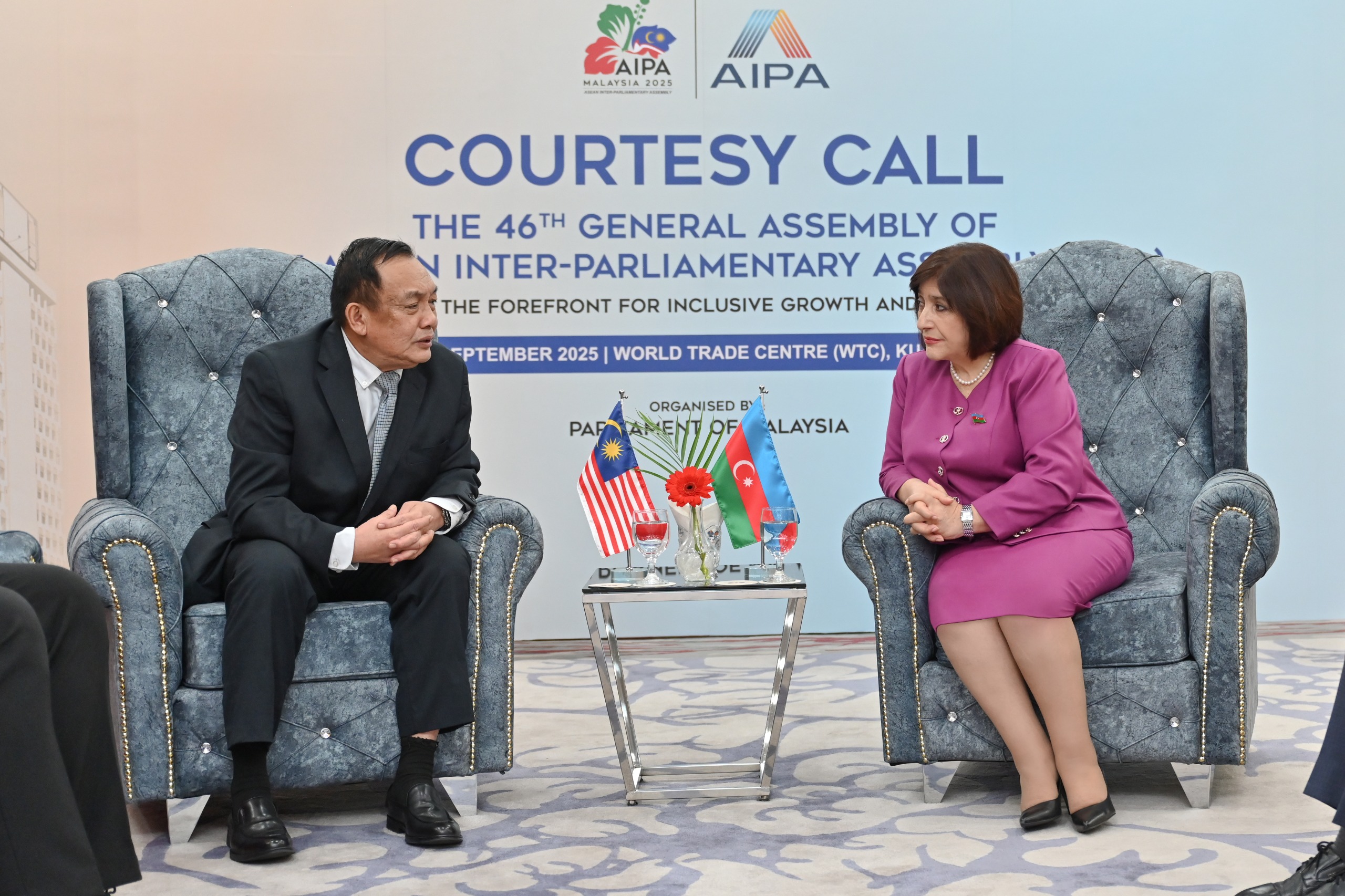 Sentyabrın 19-da Milli Məclisin sədri Sahibə Qafarova Malayziya Parlamenti Senatının sədri Avanq Bemi Bin Avanq Ali Basah ilə görüşüb.