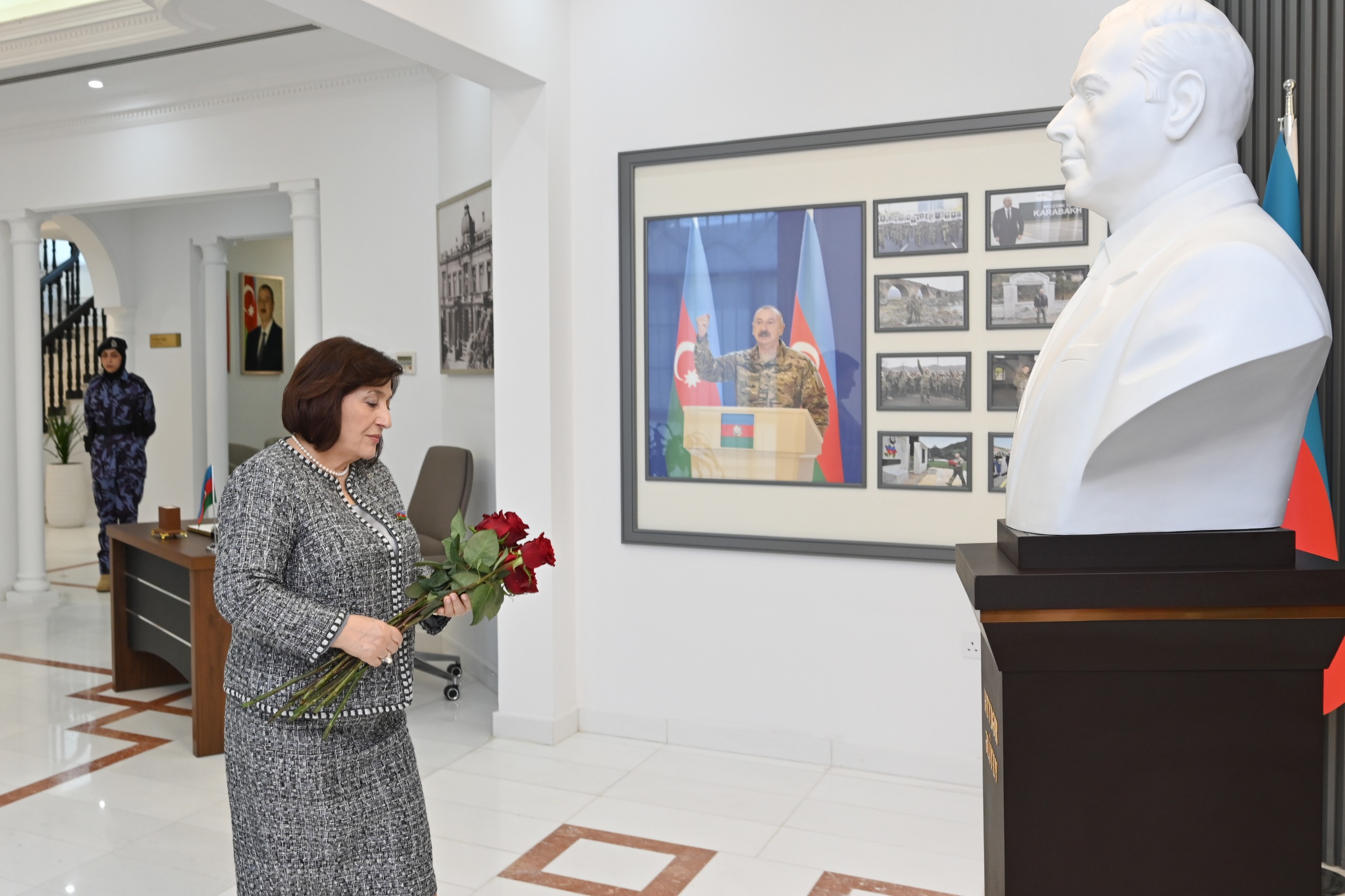 Milli Məclisin sədri və parlament nümayəndə heyəti səfirlikdə Ulu Öndər Heydər Əliyevin büstü önünə gül dəstələri qoyublar.