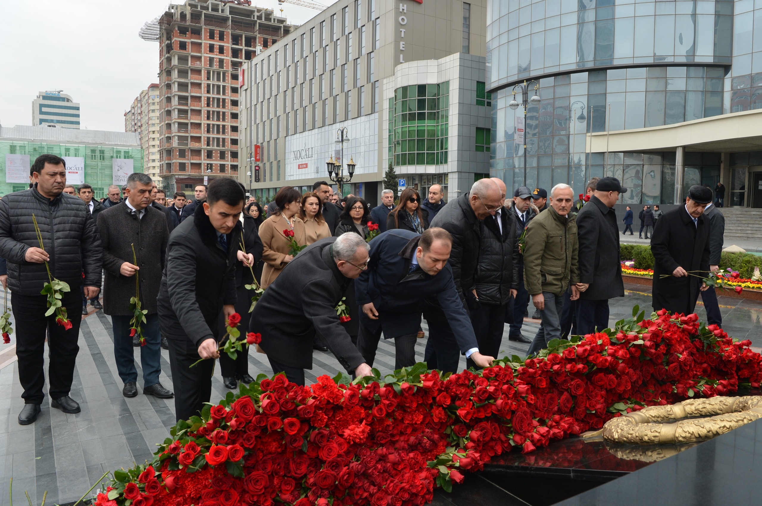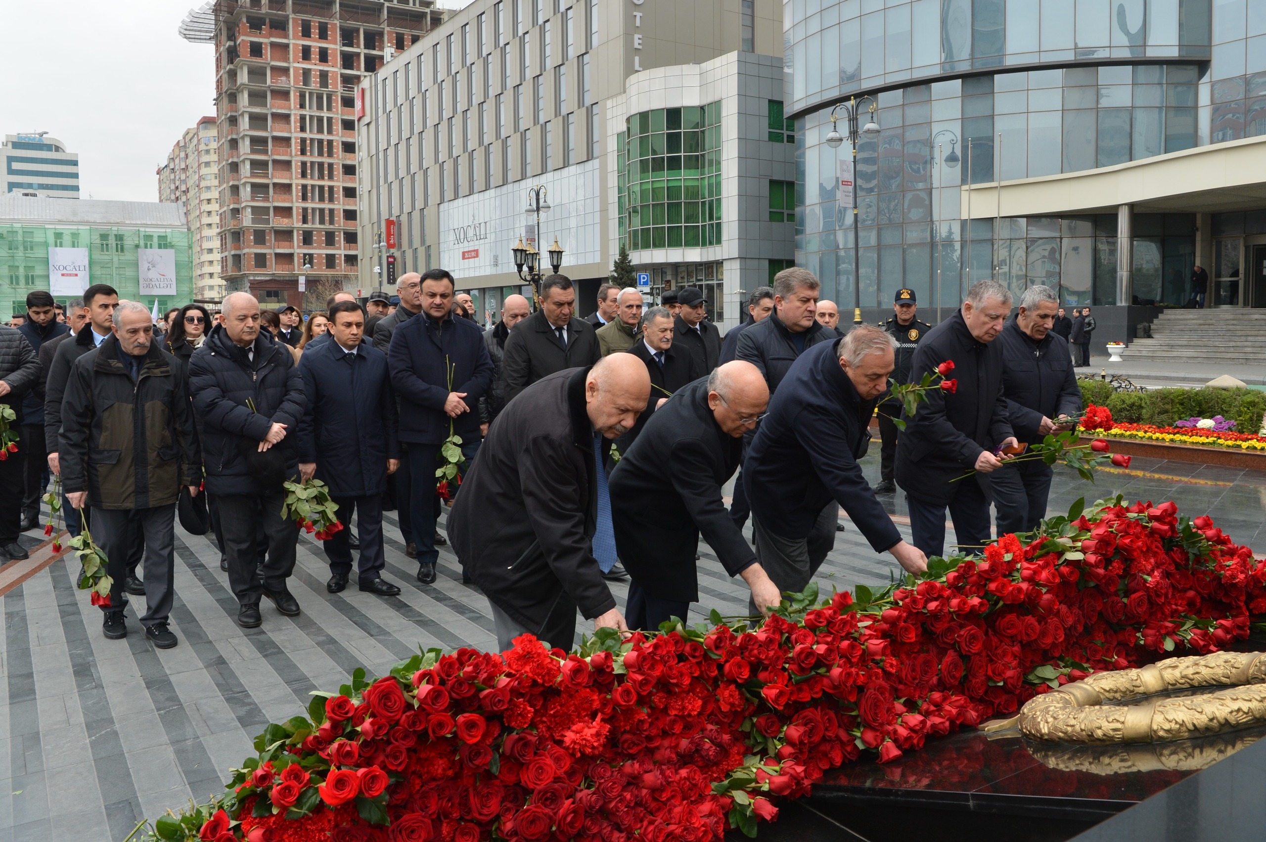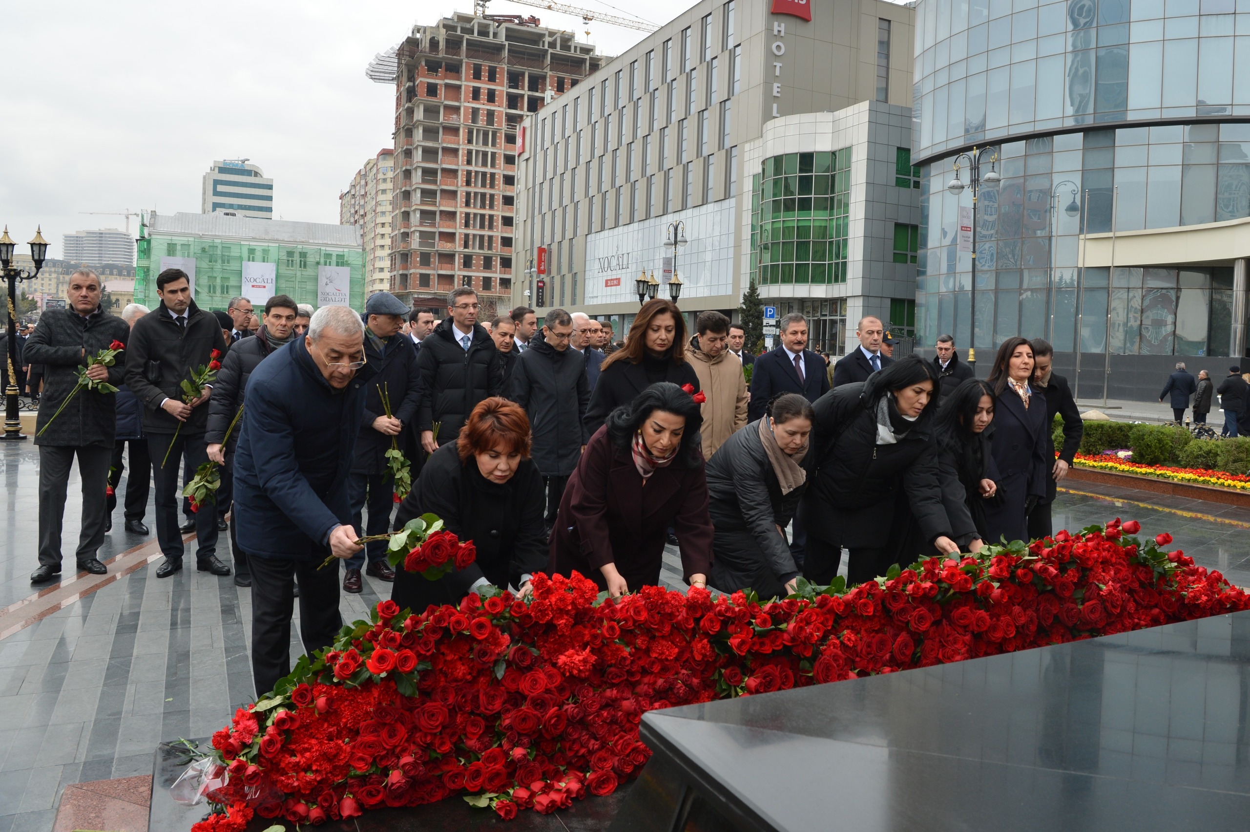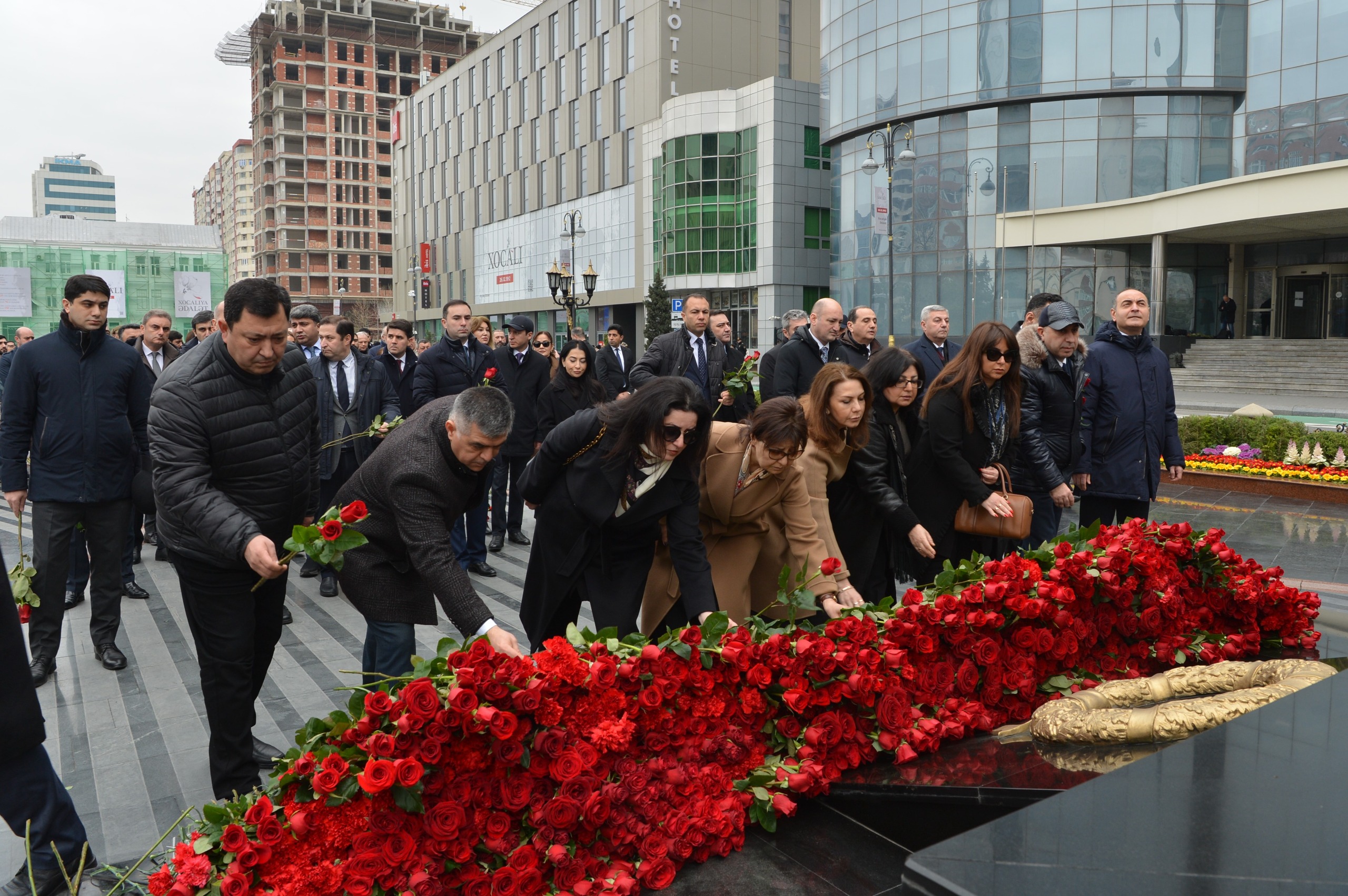Milli Məclisin kollektivi Xocalı soyqırımı qurbanlarının əziz xatirəsini dərin ehtiramla yad edib, abidənin önünə gül dəstələri düzüb.