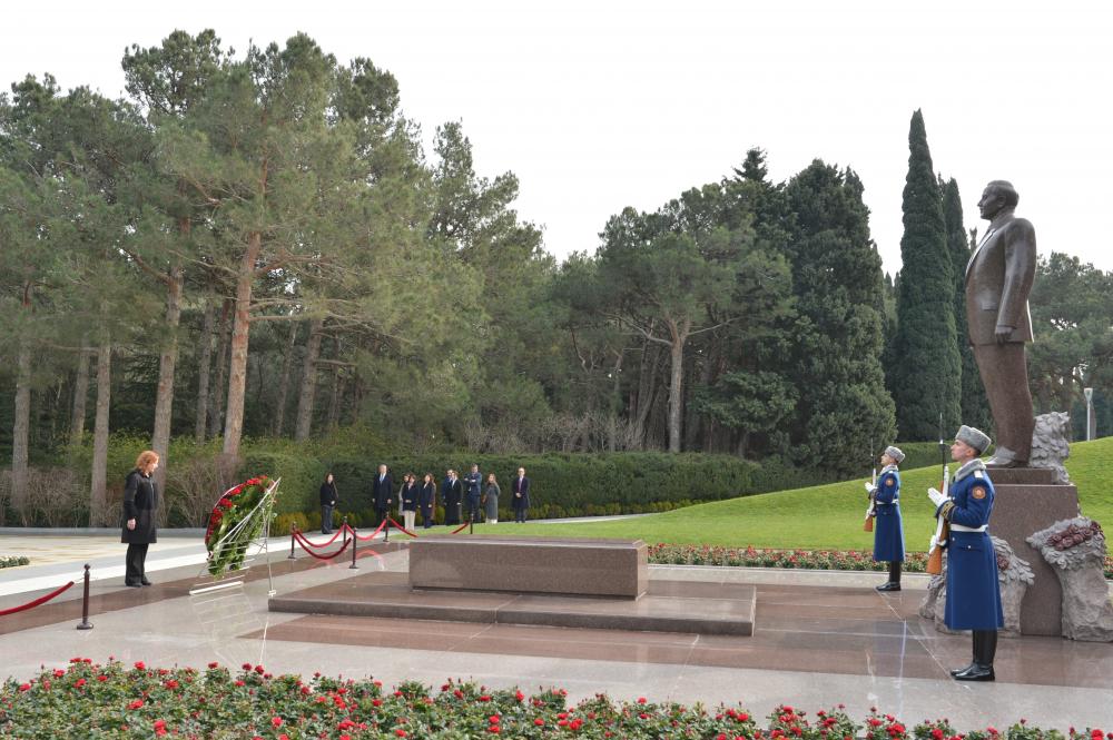 Посетив 23-го января Аллею почётных захоронений, находящаяся в нашей стране с официальным визитом председатель Конгресса Депутатов Испании Франсина Арменголь Сосиас почтила память Общенационального Лидера нашего народа, архитектора и строителя независимого азербайджанского государства Гейдара Алиева и возложила венок к его надгробию.