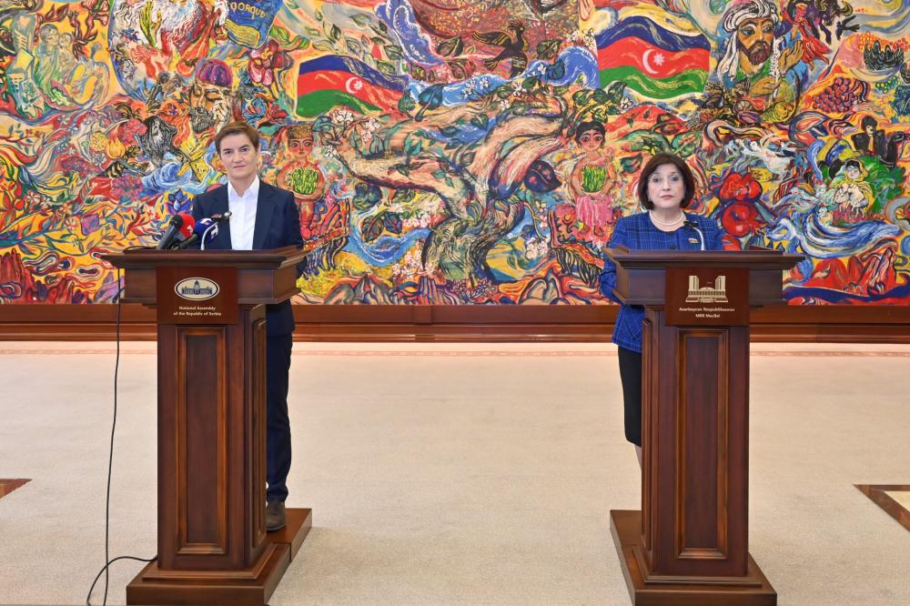 Speakers of Parliaments of Azerbaijan and Serbia Make a Press Statement