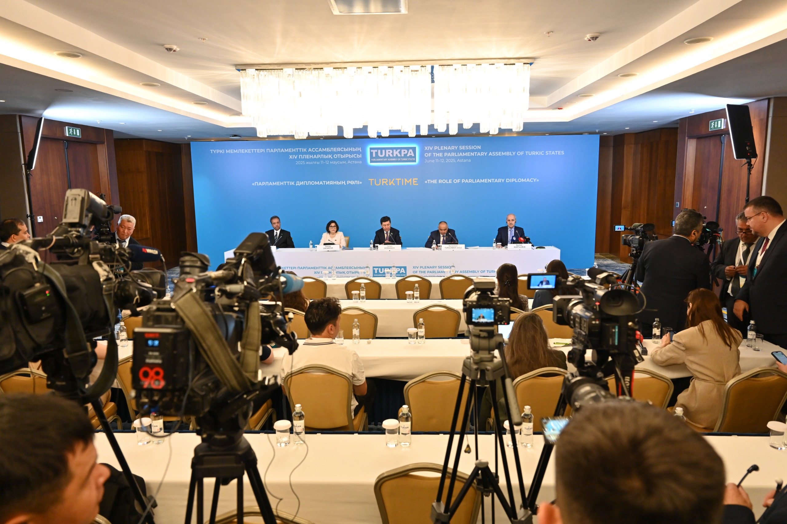 Speaker of the Milli Majlis Sahiba Gafarova talked at the press conference that followed the 14th Plenary Meeting of TURKPA held in Kazakhstan’s capital city of Astana on 12 June. She mentioned the transfer of the TURKPA Presidency from the Milli Majlis of the Republic of Azerbaijan to the Mazhilis of the Parliament of the Republic of Kazakhstan, expressing her confidence that this presidency will contribute in its own way to a continued solidification of the Organisation and strengthening of our common cause.