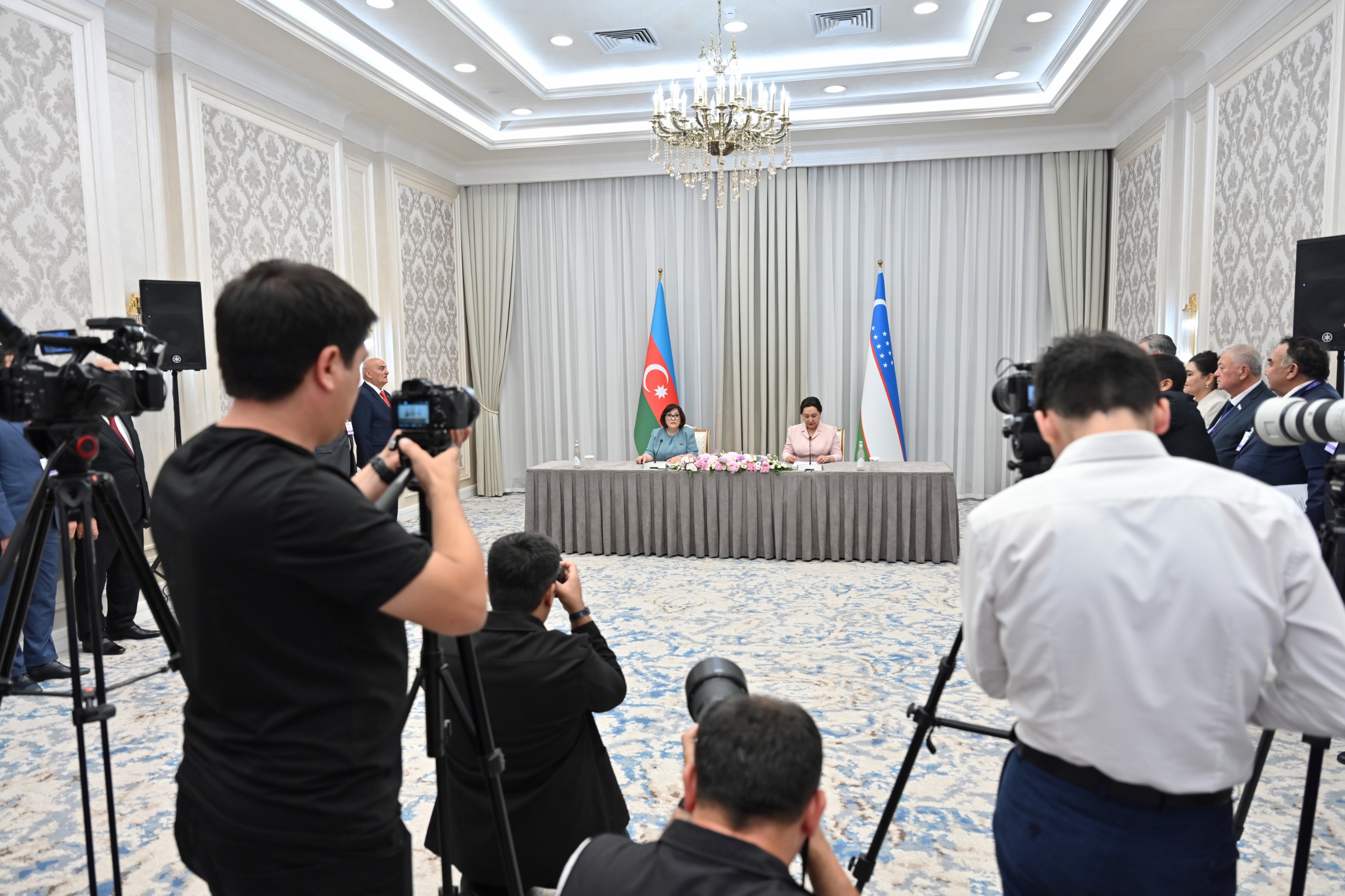 Speaker of the Milli Majlis Sahiba Gafarova and Speaker of the Senate of the Oliy Majlis of the Republic of Uzbekistan Tanzila Narbayeva have made a press statement following the First Uzbek-Azerbaijani Inter-Parliamentary Forum.