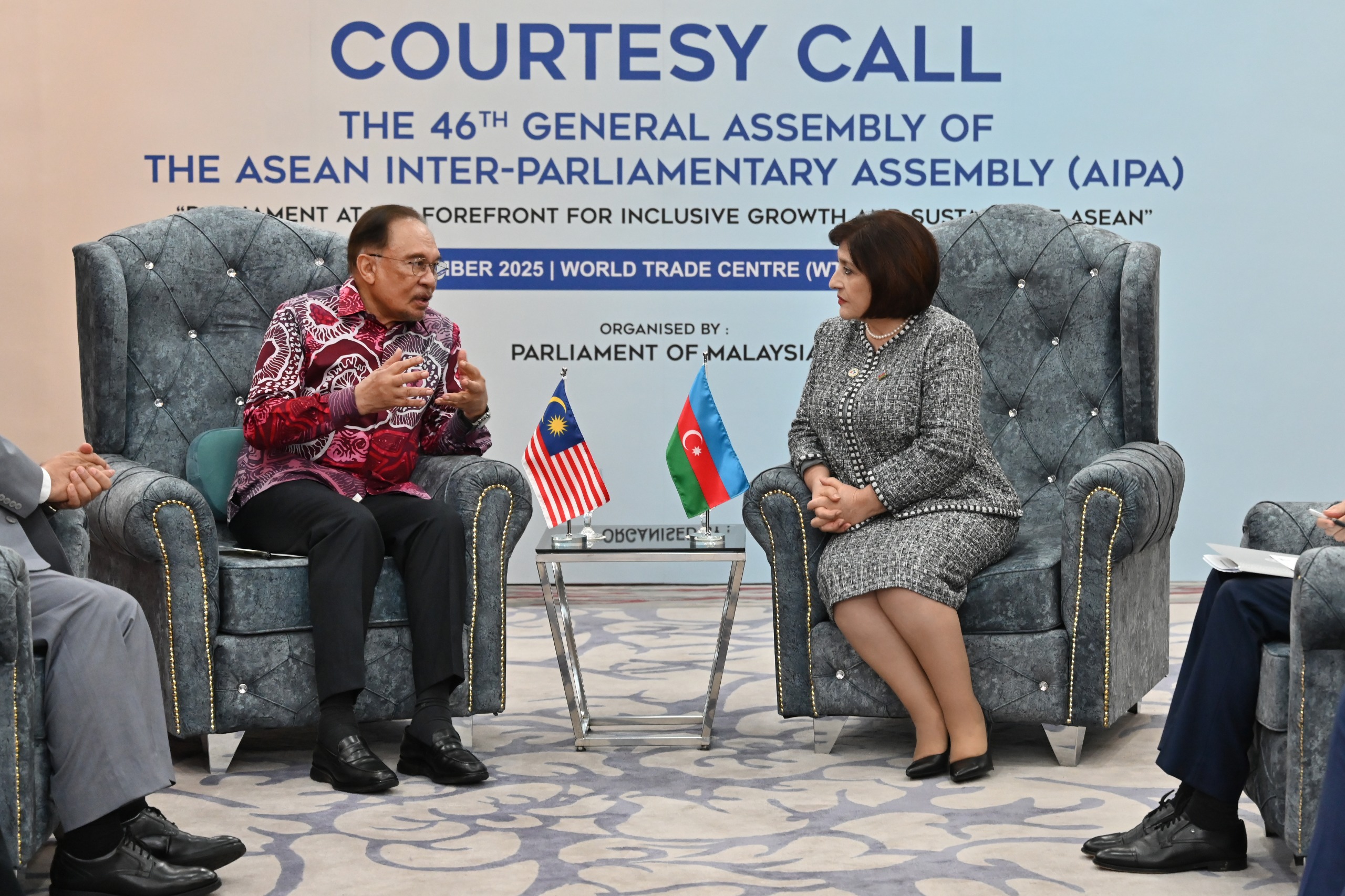 Prime Minister Anwar Ibrahim greeted the Speaker of the Azerbaijani Parliament, emphasised the significance of the 46th AIPA General Assembly and thanked the Speaker of the Milli Majlis for her participation in this event.