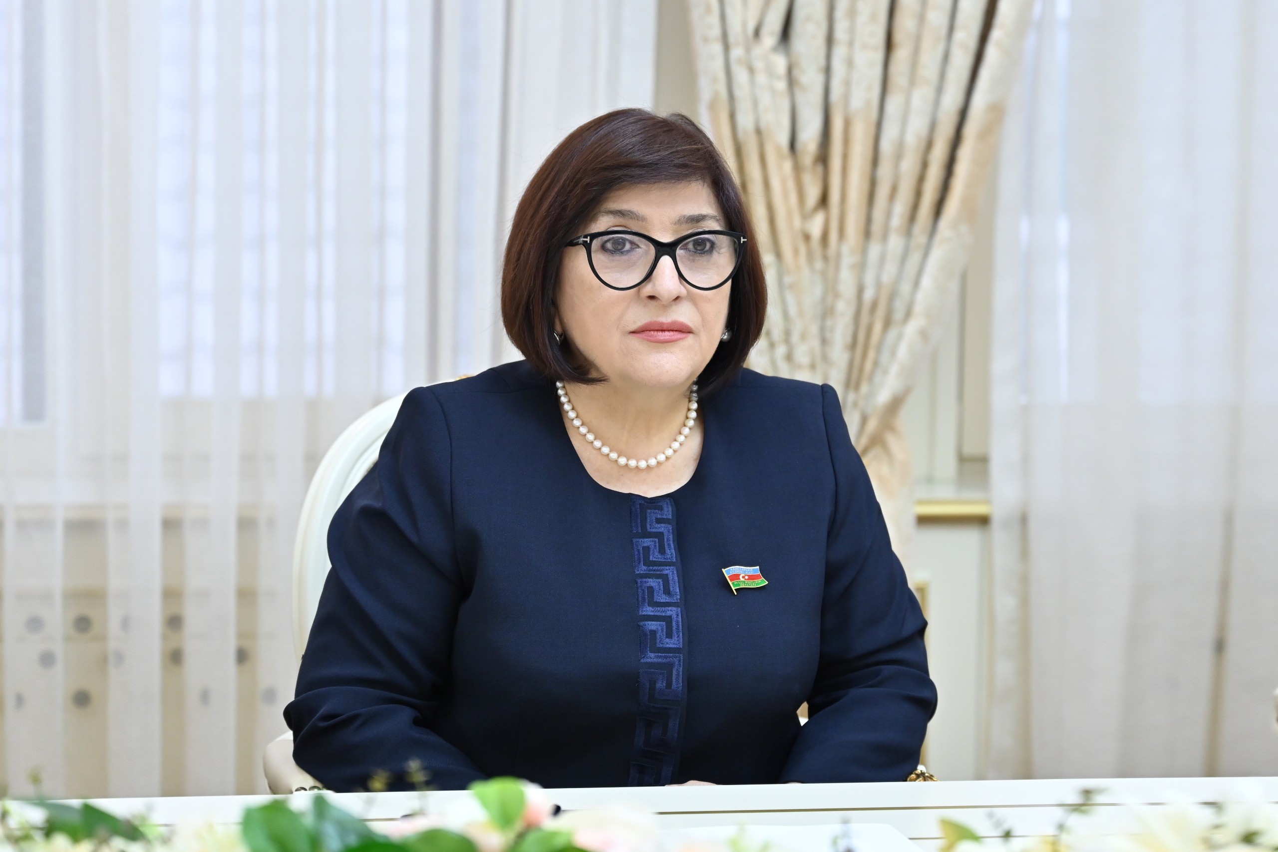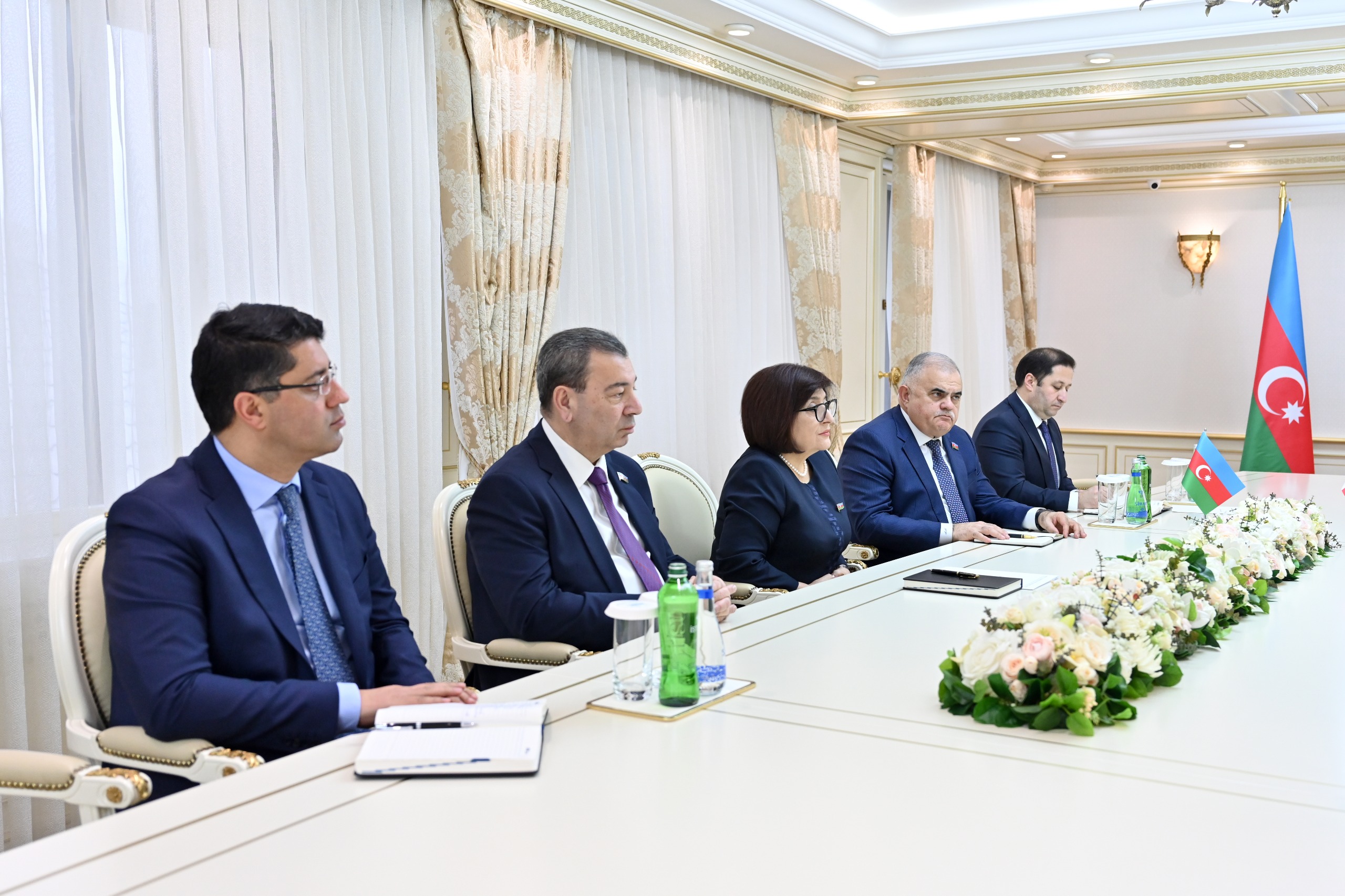 Спикер Милли Меджлиса Сагиба Гафарова встретилась с председателем Комитета иностранных отношений Парламента Грузии Николозом Шамхарадзе, находящимся в нашей стране с визитом с целью участия в 10-м трёхстороннем заседании комитетов иностранных отношений парламентов Азербайджана, Турции и Грузии.