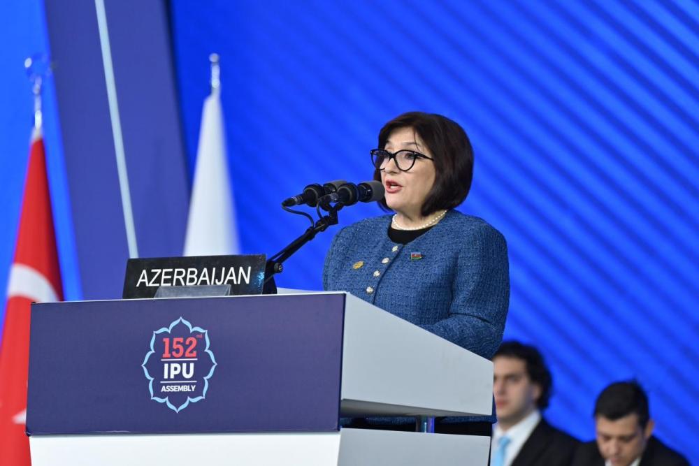Milli Məclisin sədri Sahibə Qafarova Parlamentlərarası İttifaqın 152-ci Assambleyasının iclasında çıxış edib. Azərbaycan parlamentinin spikeri çıxışında bu gün dünyada artan qeyri-müəyyənlik dövründə münaqişələrin davam etdiyini, gərginliyin artdığını, böhranların dərinləşdiyini və bərabərsizliklərin genişlənməkdə davam etdiyini bildirib. Onun sözlərinə görə, bu meyillər sülhün və ədalətin təməllərini sarsıtmaq riski yaradır. O cümlədən, Sahibə Qafarova iqlim dəyişikliyinin artıq real olduğunu və təcili tədbirlər tələb etdiyini vurğulayıb. Bu şəraitdə Assambleyanın mövzusunun həm vaxtında, həm də son dərəcə aktual olduğunu söyləyən Milli Məclisin sədri deyib ki, bu, kollektiv və məsuliyyətli şəkildə hərəkət etməyə çağırır.